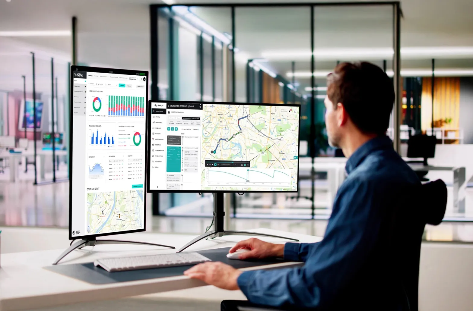 В основе сервисов лежат два важных компонента. Первый – телематический модуль, который собирает параметры о режиме работы автомобиля, включая данные о расходе топлива и местоположении. Вся информация в онлайн-режиме передается на специальную веб-платформу, где клиент может проверить все необходимые данные. Второй компонент – сама платформа, где аккумулируются массивы данных. На платформе пользователю доступна информация о пройденных маршрутах, также есть возможность контролировать местоположение конкретного автомобиля в режиме реального времени. Дополнительно система позволяет осуществлять контроль за техническим обслуживанием автомобиля. Для удобства пользования интерфейс системы, помимо веб-платформы, реализован и в виде специального приложения «Спутник Бизнес», благодаря которому клиент может оперативно решать вопросы, связанные с автопарком.